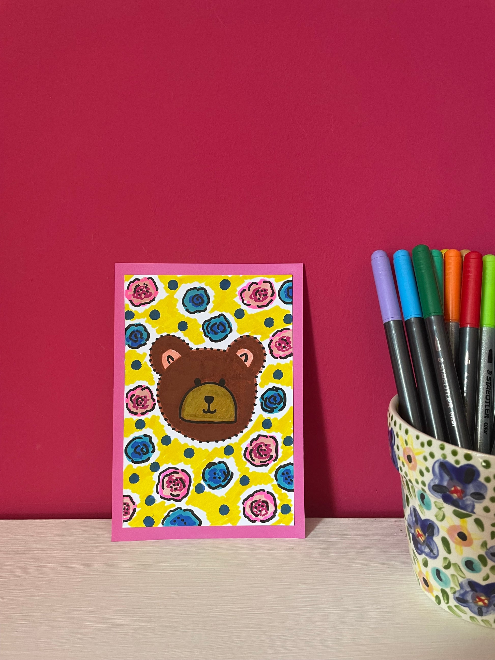 Original bear painting on card. Approximately A6.