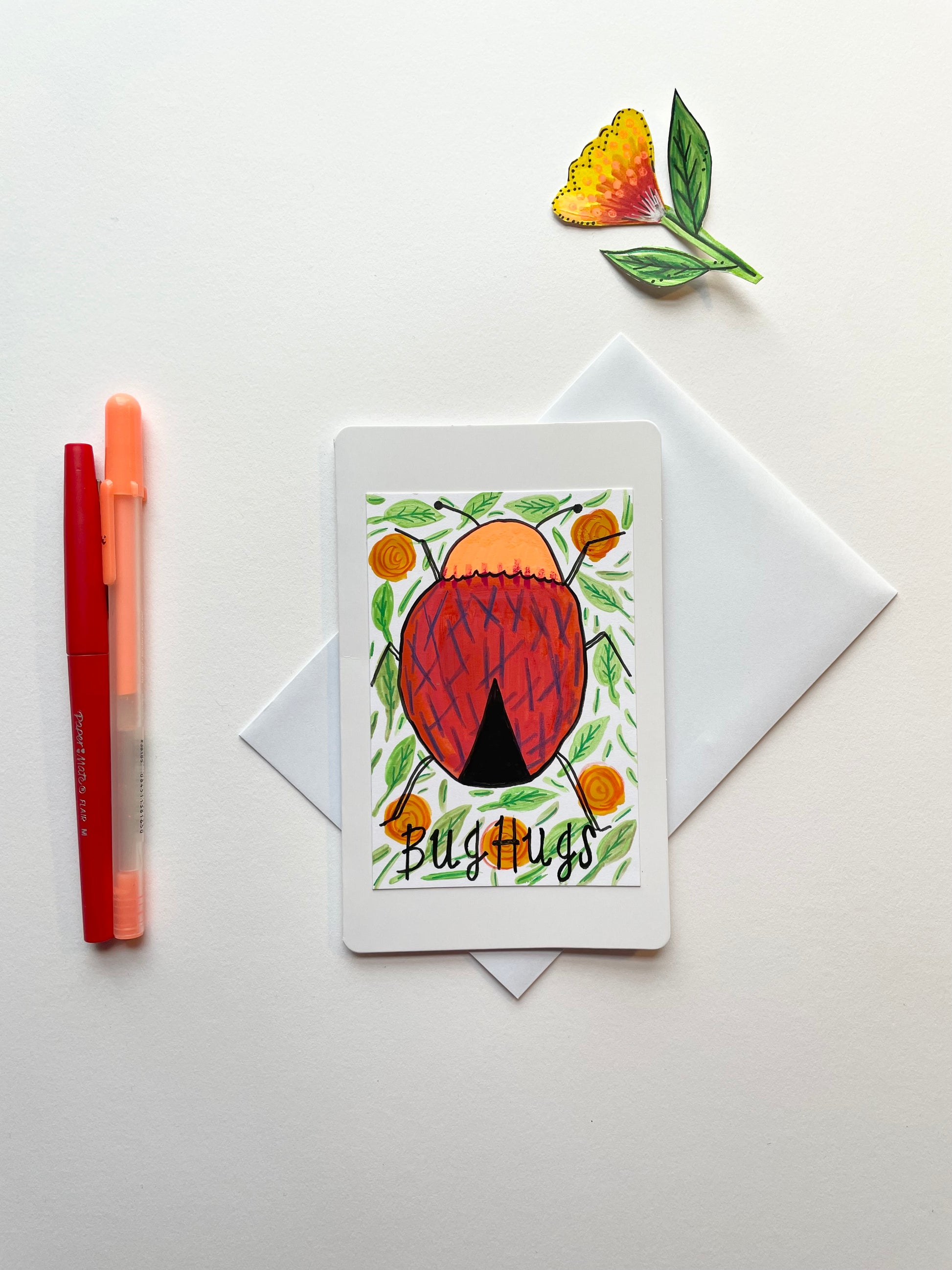 Hand painted/ drawn greeting card, A6 with envelope, left blank inside.