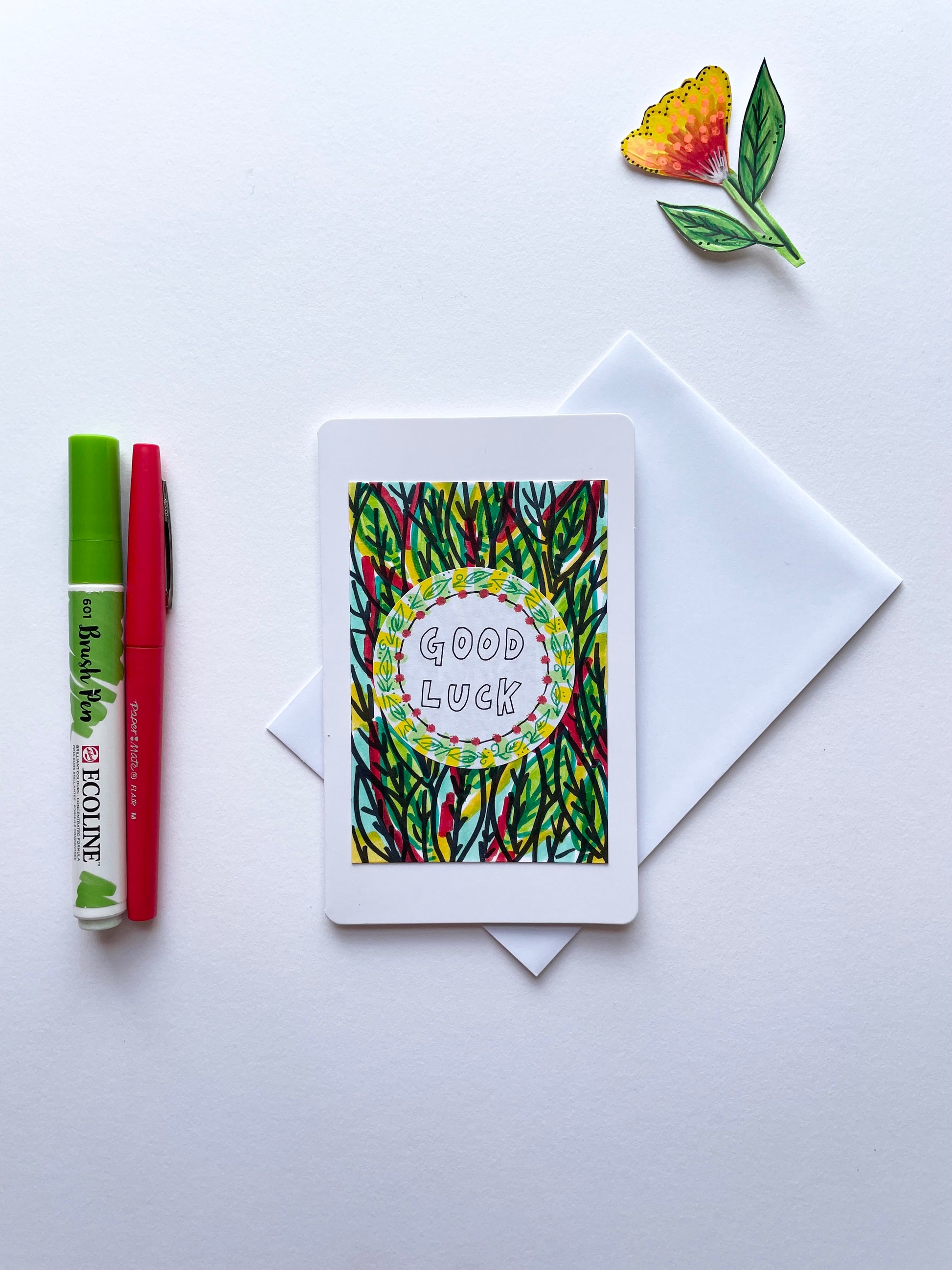 Hand painted greetings card, A6 with envelope, left blank inside.
