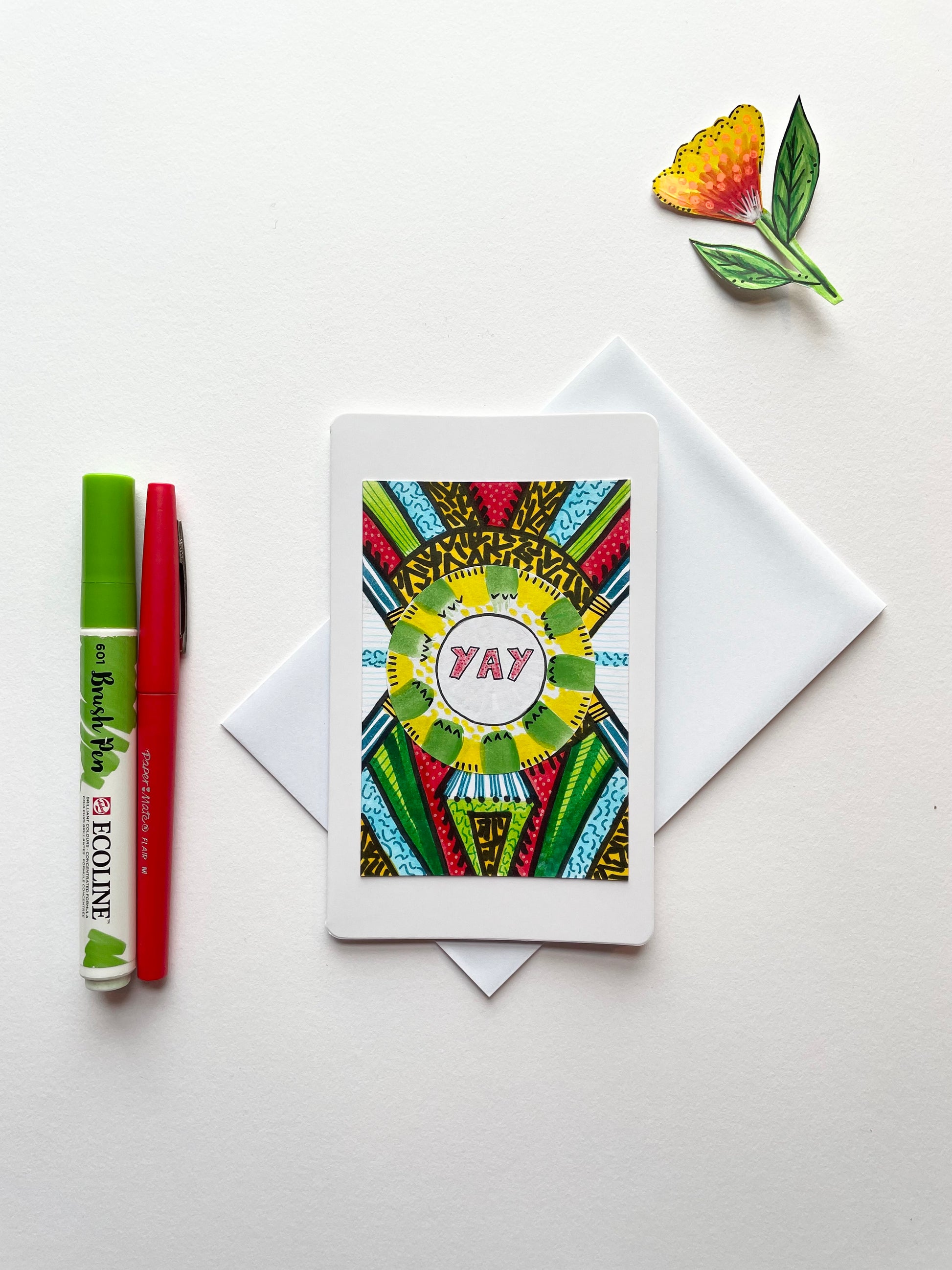 Hand painted/ drawn greetings card, A6 with envelope, left blank inside.